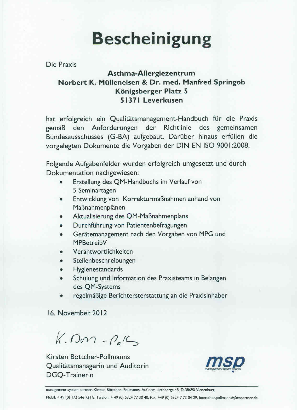 In jährlichen QM-Bewertungssitzungen wird unser QM-System auf seine Wirksamkeit hin überprüft. Wir führen sinnvolle und fachgerechte Arbeitsabläufe durch und wollen uns mit unserem Qualitätsmanagement-System ständig weiterentwickeln und verbessern.
